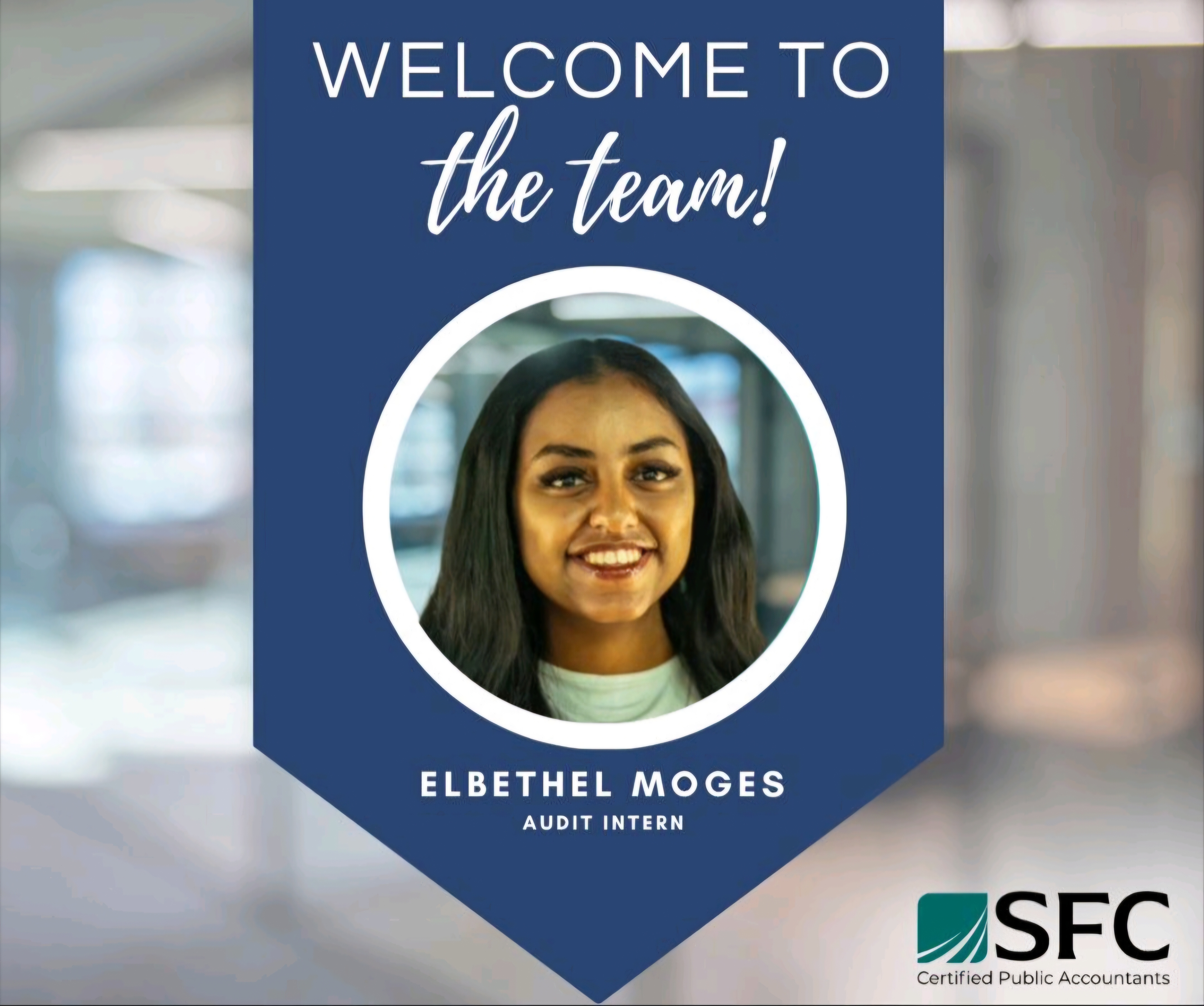 | Elbethel Moges has been announced as a new Audit Intern with SFC! Elbethel is also a recent scholarship winner and first student member to join a major internal committee. | |